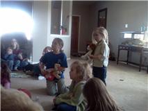 Beforehand we were told the kids could bring their favorite toy. They LOVED getting to do show and tell. This is Sadie standing up to walk to the front and introduce the world to her stuffed beagle named Calla. Afterwards we had peanut butter cookies (peanut butter plays a part in the book) and my kids got some playtime while the moms planned out the upcoming camping trip.